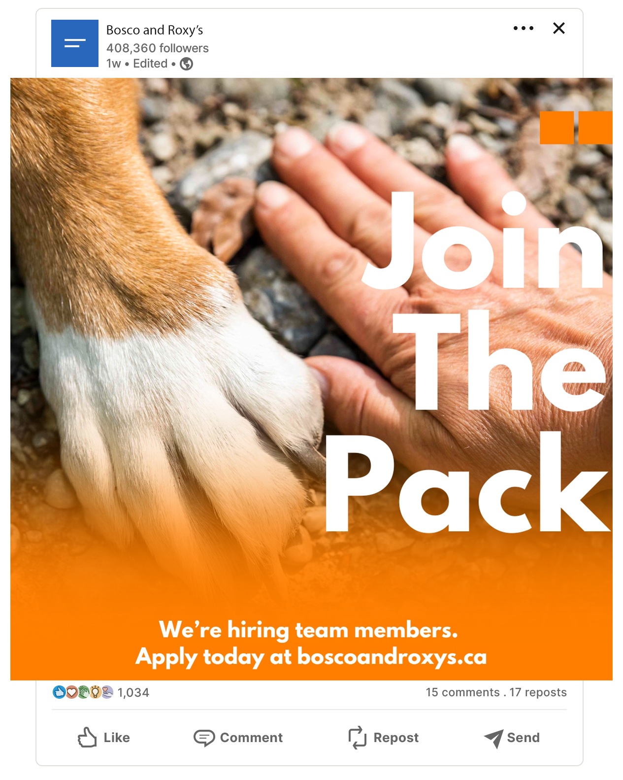 This project showcases a targeted social media campaign developed for Bosco and Roxy’s, a Canadian gourmet dog treat brand, aimed at engaging pet owners and building brand loyalty. The campaign combines product spotlights, short-form videos, behind-the-scenes content, and influencer collaborations with playful visuals and festive themes to create a vibrant digital presence.